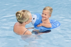 Rozmery 50 × 46 cm a nosnosť do 30 kg sú optimalizované pre malých plavcov a ich prvé isté krôčiky vo vode.