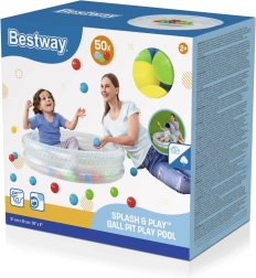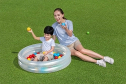 Univerzálny nafukovací bazénik 2v1 od značky BESTWAY slúži ako brodítko aj suchý bazénik na loptičky. Kompaktné rozmery 91 × 20 cm, 50 farebných loptičiek v balení, odolný vinyl a bezpečnostné ventily zaistia bezpečnú a zábavnú hru doma aj na záhrade.