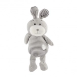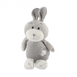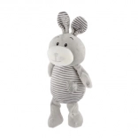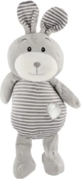 Tento sivý pruhovaný zajačik s roztomilými detailmi a srdiečkom na brušku prináša deťom pocit bezpečia a pohodlia. Je vyrobený z príjemného, hebkého materiálu, ktorý láka k objatiu a je šetrný aj k najmenším bábätkám.