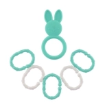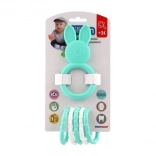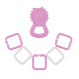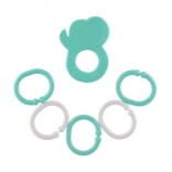 Táto ľahká a ľahko uchopiteľná sada kombinuje mäkké silikónové hryzátko v tvare zvieratka s niekoľkými plastovými krúžkami, ktoré možno prepájať. Rôzne textúry a tvary stimulujú hmat, zrak aj sluch a prinášajú úľavu citlivým ďasnám pri prerezávaní zúbkov.
