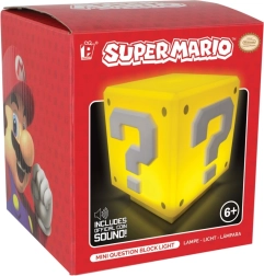 Elegantná stolová lampa v tvare ikonického otáznikového bloku z hernej série Super Mario. Po zapnutí produkuje autentické zvukové efekty, ktoré prinášajú nostalgiu a atmosféru herného sveta Maria.