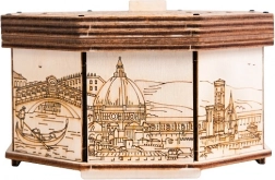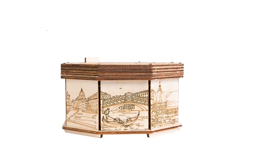 Detailné gravúry mestských scenérií a hladký prírodný povrch robia z krabičky štýlový doplnok aj dekoráciu.