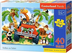 Veľké detské puzzle so 40 maxi dielikmi a motívom safari s rozmerom 59 × 40 cm. Kvalitné spracovanie CASTORLAND je bezpečné pre deti od 4 rokov a podporuje koncentráciu, jemnú motoriku a spoznávanie tvarov a farieb.