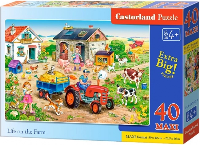 Veľké, farebné puzzle s motívom života na farme potešia malých staviteľov. Sada obsahuje 40 dielikov MAXI a po zložení vytvorí obrázok 59 × 40 cm. Ideálne pre deti od 4 rokov – veľké dieliky sa dobre držia a kvalitné spracovanie CASTORLAND zaručuje odolnosť aj bezpečnosť.