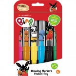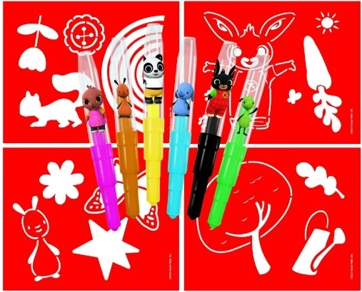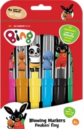 Sada fúkacích fixiek BING poteší všetkých malých umelcov. Šesť pestrých farieb a tematické šablóny umožnia ľahko vytvárať originálne obrázky s obľúbenými postavičkami. Jednoduché fúkanie cez fixku vytvára jemné prechody a efekty spreja bez neporiadku.
