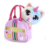 Hebučký plyšák s veľkými trblietavými očkami sa schová do štýlovej kabelky, takže si ho môžeš vziať všade – na prechádzku, do auta aj na návštevu.