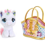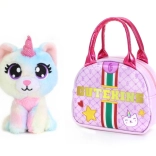 Vyber si svoj štýl: roztomilé mačiatko, hravé šteniatko, kúzelný jednorožec alebo fantazijné mačiatko jednorožec. Kabelka slúži ako prenosný domček aj úložný priestor na drobnosti. Bezpečné spracovanie a jemné materiály sú vhodné už pre najmenšie deti od 12 mesiacov.