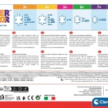 Séria SuperColor od značky CLEMENTONI je známa špičkovou kvalitou a sýtymi farbami, ktoré odolávajú blednutiu. Deti si precvičia jemnú motoriku, logické myslenie a trpezlivosť, zatiaľ čo sa zoznamujú s rôznymi druhmi dinosaurov a kontinentmi.
