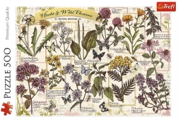 Puzzle Kniha bylín obsahujú 500 dielikov a ponúkajú nádhernú retro grafiku s rastlinami, pripomínajúcu starý herbár.