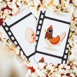 V základnej verzii sú k dispozícii 3 karty: Vajce, Slepica a Líška. Jeden hráč sa ujme roly režiséra, ktorý postupne vykladá karty (čo sú zábery z filmu) jednu na druhú. Úlohou ostatných hráčov je pozorne sledovať film a „zastrihnúť“, keď sa vo filme objaví 5 Vajec. Ale pozor! Ak sa vo filme, v ktorom sa už nachádza Vajce, objaví Slepica, sadne si na Vajce a to sa prestane vo filme objavovať. Ak sa objaví Líška a Slepica si sadne na Vajce, Líška Slepicu unesie a Vajce sa vo filme objaví znova! Okrem toho môžu scenár pokaziť farmár Wiesiek, kohút Rokoko, pes Frondzel a ďalší.