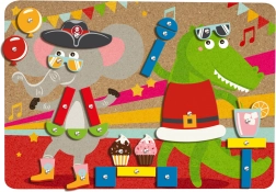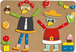 Táto obľúbená hra s kladivkom nadchne malých staviteľov aj malých umelcov. Vďaka farebným dreveným dielikom a potlačeným špeciálnym tvarom môžu deti vytvárať vlastné obrázky, vzory a scény na pevnej korkovej nástenke. Pri pripájaní dielikov klinčekmi sa prirodzene rozvíjajú jemná motorika, koordinácia oko–ruka a trpezlivosť.