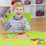 Zábavná a kreatívna hra s kladivkom, ktorá rozvíja detskú jemnú motoriku, kreativitu a fantáziu. Obsahuje bohatú sadu drevených dielikov, klincov, kladivko a korkovú nástenku s potlačou pre nekonečné tvorenie.
