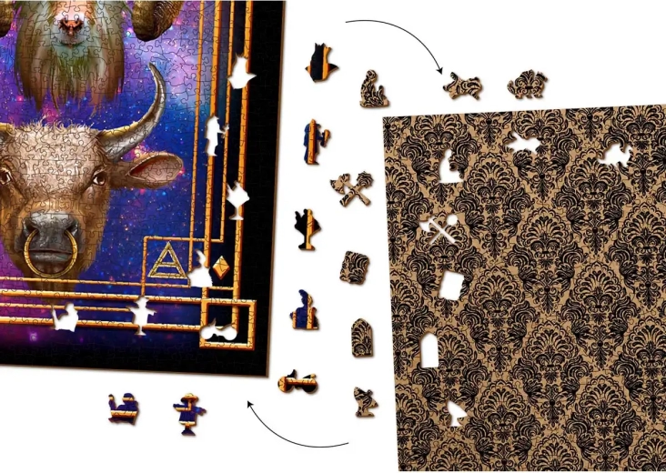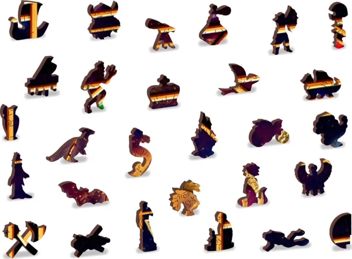 Laserom vyrezávané drevené puzzle WOODEN CITY so svojimi špeciálne tvarovanými dielikmi je neuveriteľne zábavné. Časť dielikov je vyrobená v tvare zvierat, stavieb alebo predmetov, ktorých výsledný efekt umocňujú laserom zvýraznené detaily. Tieto dieliky môžu samostatne stáť ako drobné figúrky. Skladanie puzzle s rôznotvarými dielikmi je náročnejšie a predstavuje väčšiu výzvu než skladanie klasického puzzle. Puzzle je navyše obojstranné, skladať môžete podľa obrázka (lícová strana) aj podľa tvaru (rubová strana so vzorom).