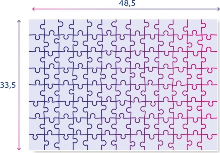 Rozmer zloženého puzzle cca 48,5 × 33,5 cm