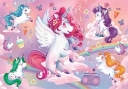 Maxi puzzle s 24 dielikmi a motívom veselých jednorožcov od CLEMENTONI poteší deti aj dospelých. Ponúka kvalitnú tlač, presne zapadajúce dieliky a pevnú krabicu. Skvelá zábava, ktorá rozvíja sústredenie a jemnú motoriku.