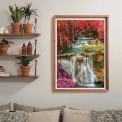Viacúrovňové kaskády uprostred jesennej prírody vytvárajú vizuálne bohatú scénu plnú detailov, ktoré vás budú baviť skladať.