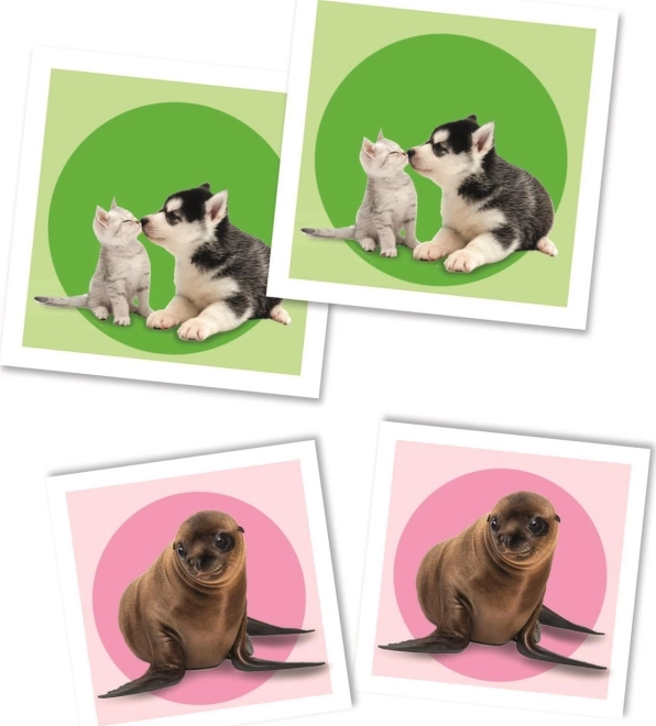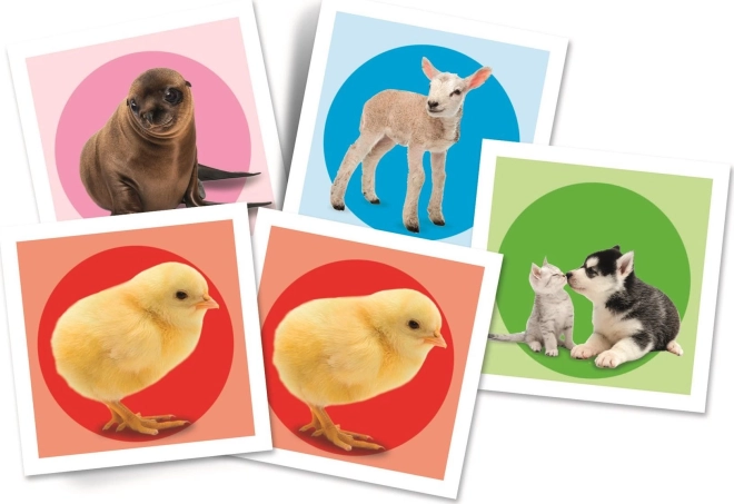 Farebné ilustrácie zvieracích mláďat priťahujú pozornosť a motivujú deti k opakovanému hraniu, čím prirodzene trénujú pamäť a sústredenie.