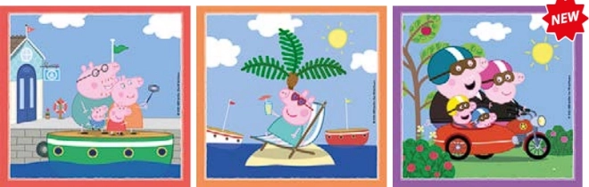 Urobte deťom radosť sadou troch puzzle s obľúbeným motívom Prasiatko Peppa. Dieliky sú presne vyrezané a ľahko sa skladajú, takže sú vhodné aj pre začínajúcich malých staviteľov. Kvalitné materiály a exkluzívna technika tlače zaručujú dlhodobo krásne, jasné a sýte farby.
