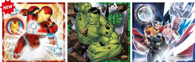 Sada detských puzzle od CLEMENTONI prináša tri samostatné štvorcové obrázky po 48 dielikoch. Licencovaný motív MARVEL AVENGERS poteší všetkých fanúšikov superhrdinov, zatiaľ čo vynikajúca ostrosť a kvalita tlače zaistia nádherné farby aj jemné detaily. Vďaka presne tvarovaným dielikom je skladanie plynulé a príjemné.