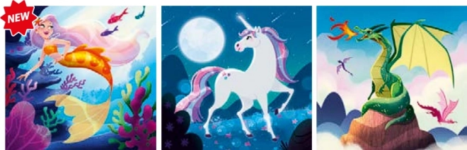 Sada Clementoni prináša zábavné skladanie s motívom fantastických bytostí, ktoré podnecujú predstavivosť a kreativitu. Tri samostatné puzzle s rovnakým počtom dielikov aj rozmerom ľahko zvládnu aj menšie deti, pričom si posilnia sústredenie a jemnú motoriku.
