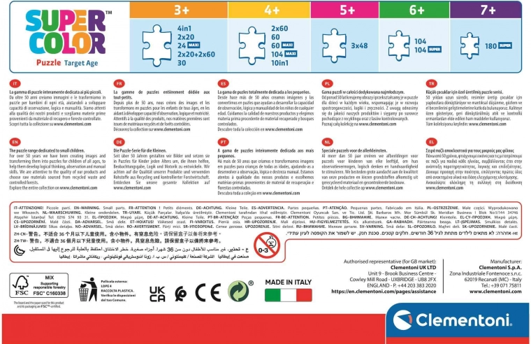 Objavte kúzlo klasickej rozprávky s puzzle CLEMENTONI Disney Pinocchio z kolekcie SuperColor. Deti si pri skladaní trénujú trpezlivosť, logiku aj jemnú motoriku, zatiaľ čo ich sprevádza farebná ilustrácia DISNEY. Kvalitná tlač a pevný kartón zabezpečujú dlhú životnosť a opakované skladanie.