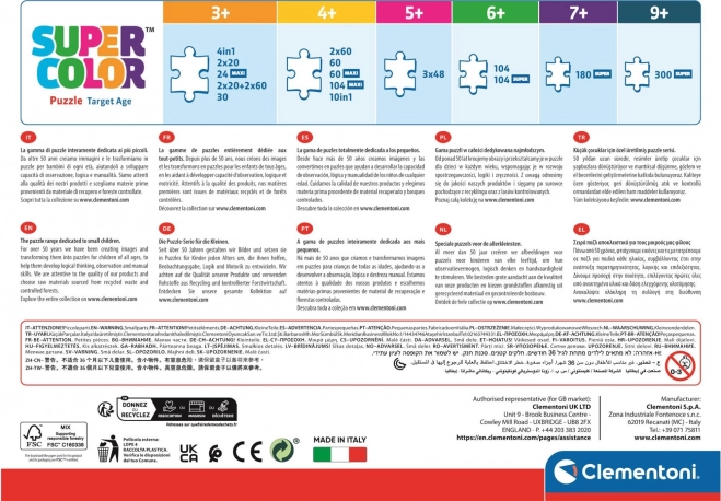 Prémiová tlačová technika zaisťuje intenzívne, dlhotrvajúce farby, ktoré nevyblednú ani pri častom používaní. Puzzle so 104 dielikmi je ideálne pre deti, ktoré už zvládajú väčšie skladačky, a pomáha im rozvíjať jemnú motoriku, logické myslenie a vizuálne vnímanie.