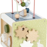 Korálkové bludiská, vkladanie tvarov, posuvné labyrinty, ozubené kolieska a otáčacie doštičky ponúkajú pestrú aktivitu na rozvoj zručnosti a logiky.