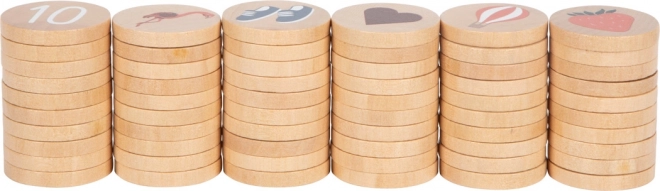 - 60 pevných drevených žetónov s farebnými ilustráciami