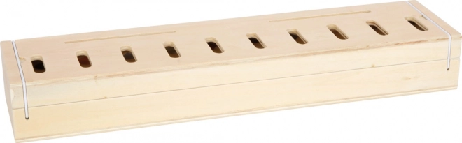 Drevený zásobník s desiatimi priehradkami udrží všetko usporiadané. Gumičkové západky zabezpečia bezpečné uzavretie – ideálne na cesty.