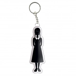 Štýlový prívesok na kľúče s motívom Wednesday poteší každého fanúšika. Odolná gumová konštrukcia a kovové očko na jednoduché zavesenie na kľúče, batoh či kabelku.