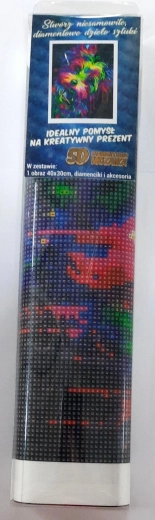 Balenie obsahuje: plátno s predtlačeným obrázkom, pero na aplikáciu kamienkov, misku na vysypanie kamienkov, vosk na nalepenie, sadu farebných kamienkov