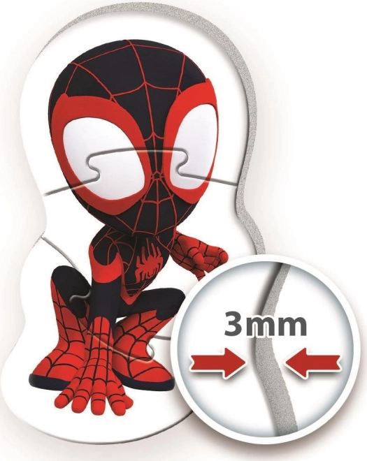 Objavte štyri tvarované puzzle pre najmenších s hrdinami z MARVEL SPIDEY a jeho úžasní priatelia vo variantoch 3, 6, 9 a 12 dielikov. Veľké, 3 mm hrubé penové dieliky sú bezpečné a ľahko uchopiteľné, ideálne na prvé skladanie. Deťom pomáhajú rozvíjať jemnú motoriku, koordináciu oko–ruka a priestorovú orientáciu – zábavná a vzdelávacia hračka v jednom.