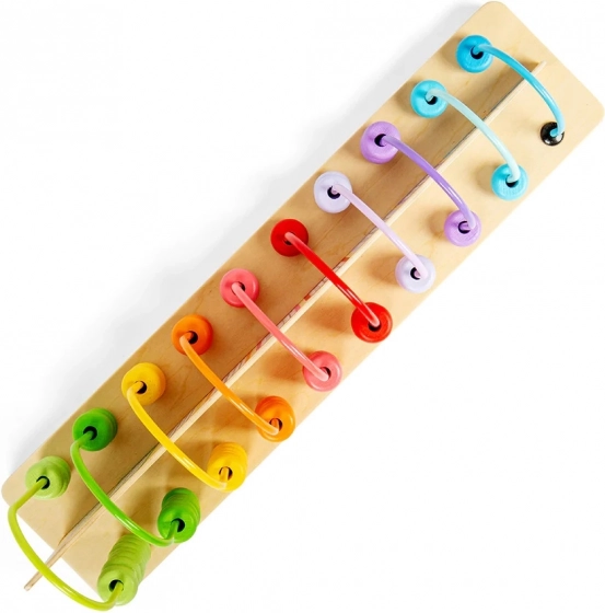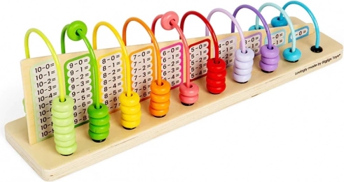 Toto drevené dúhové počítadlo je dokonalým nástrojom pre výuku sčítania a odčítania. Deti si pri tejto hračke precvičia kognitívny rozvoj, zlepšia svoju koordináciu ruka-oko a osvoja si trpezlivosť a logické myslenie. Počítadlo obsahuje celkom 56 farebných dielikov vrátane 55 korálok a jedného dreveného panelu.