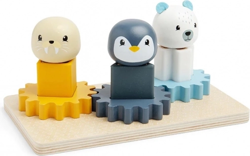 Obsahuje tučniaka, mroža a ľadového medveďa, ktoré deti môžu umiestňovať na rôzne farebné podstavce a otáčať nimi.