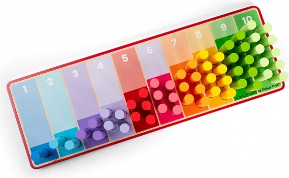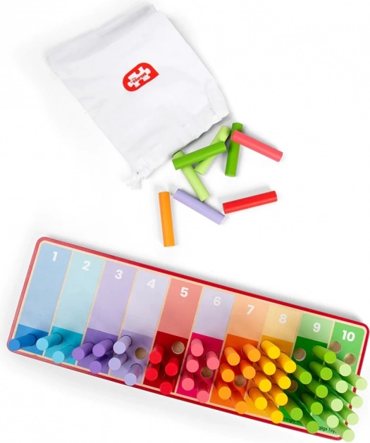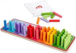 Dúhové počítacie tyčinky sú ideálnou voľbou pre deti od 18 mesiacov, ktoré sa chcú naučiť počítať a rozpoznávať farby. Hračka obsahuje drevenú dosku s farebne označenými sekciami a 55 farebných tyčiniek na vkladanie do týchto sekcií. Všetky časti tohto produktu sú vyrobené z certifikovaného FSC® dreva, a preto sú nielen bezpečné pre deti, ale tiež šetrné k životnému prostrediu.