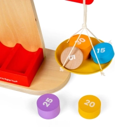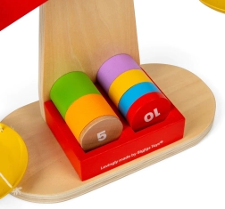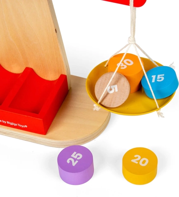 Vybavená dreveným rámom, dvoma balančnými miskami a sadou siedmich závaží s číslami, váha umožňuje deťom experimentovať s rôznymi kombináciami a učiť sa o rovnováhe. Cieľom je dosiahnuť balansovaný stav pridávaním alebo odoberaním závaží. Ideálna pre učenie STEM, ktoré zahŕňa kreativitu a novátorské myslenie. Rozvíja taktiež jemnú motoriku, priestorové vnímanie a schopnosť riešiť problémy.