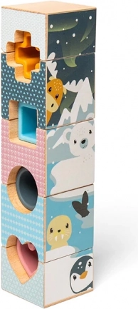Arktická veža pomáha rozvíjať kognitívne zručnosti pomocou drevených a silikónových dielov navrhnutých s motívom arktických zvierat.