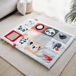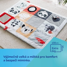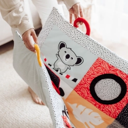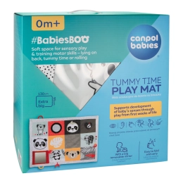 Senzorická edukačná podložka Canpol babies na ležanie na brušku z kolekcie BabiesBoo je bezpečný a príjemný spôsob, ako udržať dieťa v pohybe a umožňuje rodičovi mať chvíľku pre seba alebo robiť domáce práce. Podložka je mimoriadne veľká a mäkká – 130 x 95 cm poskytne vášmu najmenšiemu pohodlie a bezpečie. Edukačná podložka Canpol babies sa ľahko skladá, má pohodlnú rukoväť, vďaka ktorej sa ľahko prenáša, takže môžete vytvoriť detský priestor kdekoľvek budete potrebovať. Veľké zrkadlo povzbudzuje a predlžuje ležanie na brušku, počas ktorého môže bábätko zakaždým preskúmať rôzne časti podložky. Veľké množstvo zmyslových prvkov zapája detské zmysly: zrak, sluch a hmat. Rôzne textúry materiálov, kontrastné farby a vzory a jemné zvuky sú skvelou zábavou pre rozvíjajúce sa zmysly vášho bábätka od prvých okamihov života. Senzorická náučná podložka Canpol babies pomôže zabezpečiť správny motorický vývin každého dieťaťa. Podložku možno prať v práčke. Detský priestor všade tam, kde ho potrebujeme. Odporúčané fyzioterapeutkou: Magdalena Zujewicz – detská fyzioterapeutka, vychovávateľka a SI terapeutka. Mimoriadne veľká a mäkká podložka poskytne vášmu bábätku pohodlie a bezpečie. Veľké zrkadlo vzbudí záujem bábätka a predĺži čas strávený ležaním na brušku. Mnoho prvkov zapájajúcich detské zmysly: zrak, sluch a hmat. Ľahko sa skladá vďaka pohodlnej rukoväti, ktorá uľahčuje prenášanie. Kontrastné farby a vzory podporujú rozvoj zraku dieťaťa. Podporuje rozvoj hmatu a precvičuje manuálne zručnosti. Rozvíja koordináciu ruka-oko a sluchovo-motorickú koordináciu. Ľahko sa udržiava v čistote – možno prať v práčke. Ideálne pre deti od prvých okamihov života. Hračka je vyrobená z bezpečného materiálu bez bisfenolu A. Rozmery podložky: 130 x 95 cm
