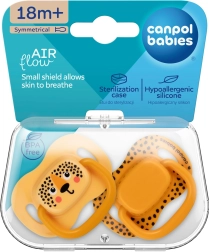 Cumlíky Canpol babies BabiesBoo 18m+ sú navrhnuté pre pohodlie aj bezpečie detí od 18 mesiacov. Symetrická savička z jemného silikónu sa prirodzene prispôsobí v ústach bez ohľadu na polohu a podporuje fyziologický rytmus satia aj správny vývoj reči. Odvetrávaný štítok minimalizuje tlak na tvár a pomáha predchádzať podráždeniu pokožky.