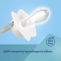 - Symetrická silikónová savička – hypoalergénna, bez chuti a zápachu.