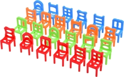 Sada 24 pestrých stoličiek v červenej, modrej, zelenej a oranžovej farbe podnecuje kreativitu a súťaživosť celej rodiny.