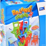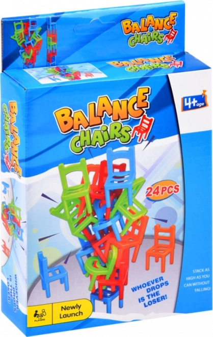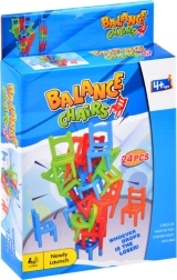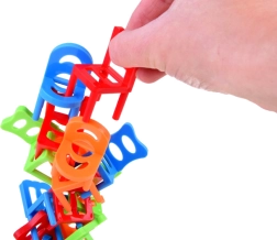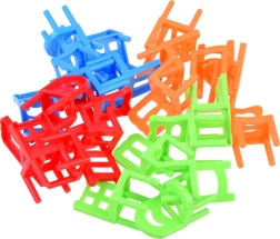 Balančná hra s padajúcimi stoličkami preverí vašu trpezlivosť, sústredenie aj šikovnosť. Cieľom je postupne pridávať stoličky do rastúcej konštrukcie tak, aby sa nedotkli už položených dielikov a veža nespadla. Vyhráva ten, kto ako prvý umiestni všetky svoje stoličky.