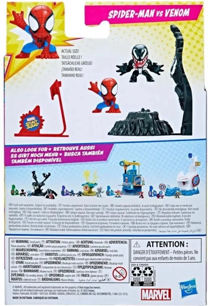 Akčný set Hasbro Marvel Stunt Squad: Spider-Man vs Venom prináša deťom od 4 rokov napínavé súboje v kompaktnom prevedení. Obsahuje dve gumové figúrky – SPIDER-MAN a VENOM – ručný vystreľovač a Venomovu základňu. Deti môžu mieriť, vystreliť hrdinu a vytvárať dynamické scenáre súbojov. Set je bez plastu v balení a je kompatibilný s ďalšími sadami Marvel Stunt Squad.