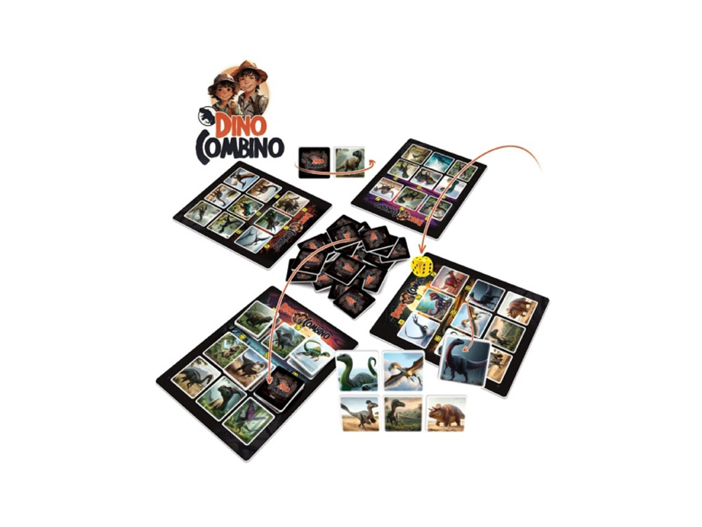 Hra DINO Combino je skvelou voľbou pre všetkých milovníkov dinosaurov. Cieľom je ako prvý doplniť svoju hernú dosku správnymi dinosaurami. Hráči sa striedajú v hádzaní kockou, odkrývajú kartičky a múdro ich priraďujú. O úspechu rozhoduje dobrá pamäť, postreh a chytré kombinovanie.