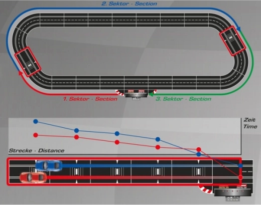 Rozšírte svoju autodráhu CARRERA o presné meranie medzičasov a urobte z každej jazdy skutočné preteky. Modul Check Lane umožňuje rozdeliť trať na sektory (až 3) a porovnávať časy jednotlivých úsekov v režime DIGITAL 132 a DIGITAL 124.