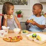 Deti sa zahrajú na kuriéra aj zákazníka, zabalia menu do krabičiek na jedlo so sebou a naservírujú všetko na podnos, ktorým sa stáva samotné balenie. Realistický vzhľad potravín a kombinácia plastových a filcových dielov robia zo súpravy skvelý základ pre hru na varenie aj spoločné hostiny s kamarátmi.