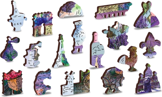 Doprajte si relax pri kvalitnom drevenom puzzle s motívom levanduľových polí. Obojstranné vyhotovenie 2v1 umožní skladať podľa farebného obrázka aj podľa zadnej strany s opakujúcim sa vzorom – ideálne pre tých, ktorí milujú premyslené výzvy a precízne spracovanie.