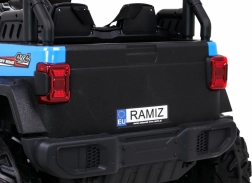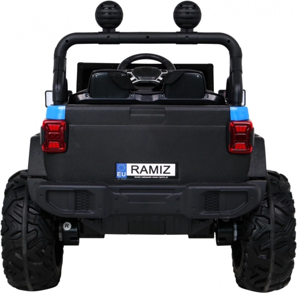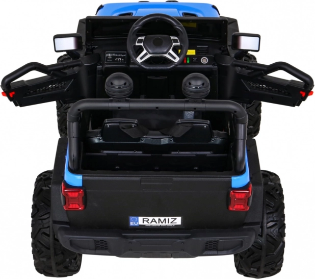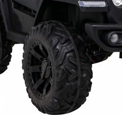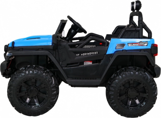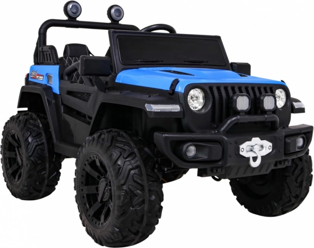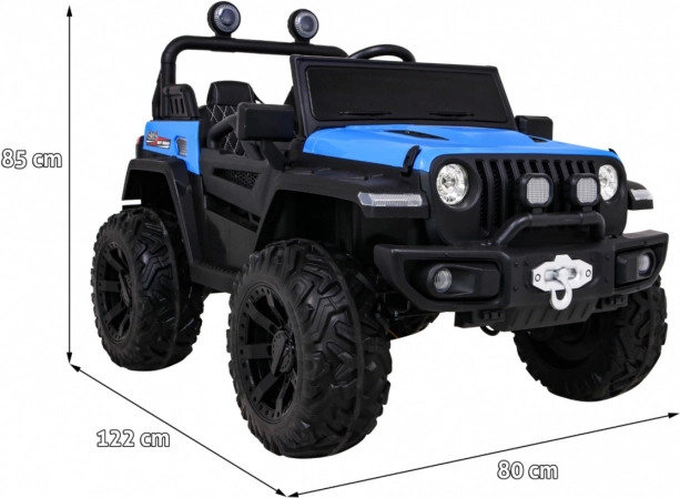 Robustné detské elektrické autíčko do terénu s pohonom 2x4 / 4x4, štyrmi motormi 4×35 W a batériou 12 V / 10 Ah. Ponúka mäkké EVA kolesá, predné aj zadné LED svetlá, diaľkové ovládanie 2,4 GHz so Stop tlačidlom a bohaté audio: Bluetooth, MP3, USB, SD. Štartovanie na kľúčik, otváracie dvere s blokáciou a pohodlné sedadlo z eko kože s pásmi pre bezpečnú a zábavnú jazdu.
