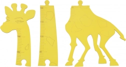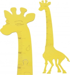 Žltá žirafa s výraznými značkami výšky dodá izbe farby a motivuje deti k pravidelnému meraniu.