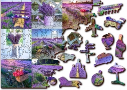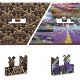 Puzzle je obojstranné, umožňuje skladanie podľa levanduľového motívu alebo podľa vzoru na rubovej strane.